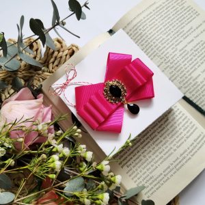 Frumosa, delicata si eleganta, accesorizata cu un accesoriu vintage, reprezinta un must have in garderoba oricarei femei. Se poate asorta oricarei tinute, fie ca este casual sau eleganta. Se prinde cu ac de brosa si vine ambalata intr-o cutiuta alba, gata petru a fi oferita cadou.