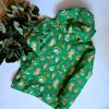 Hanoracul este realizat din french terry (95% bumbac si 5% elastan), material certificat Oeko Tex 100, tare prietenos cu pielea copilasilor, fancy, foarte confortabil, gluga protejeaza foarte bine gatul de vant, are un print extrem de vesel si este numai bun de asortat la o pereche de blue jeans/colanti/pantaloni de trening pentru o plimbare cu prietenii in parc, la gradi, in natura etc.
