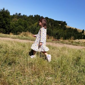Una dintre cele mai dragalase rochite – unicat, cusuta din french terry, 95% bumbac si 5% elastan, material certificat Oeko Tex 100, tare prietenos cu pielea copilasilor, foarte lejera si care, cu siguranta, va fi indragita de toate fetitele. Poate fi purtata oriunde si oricum, cu absolut orice ocazie. Perfecta pentru gradi!