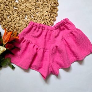 🌷 Fusta-pantalon este o piesa versatila, combinand aspectul feminin al unei fuste cu confortul pantalonilor. Cusuta din muselian, un material usor și moale, permite o mare libertate de miscare si se potrivește perfect cu topul, completand un look de vară adorabil!